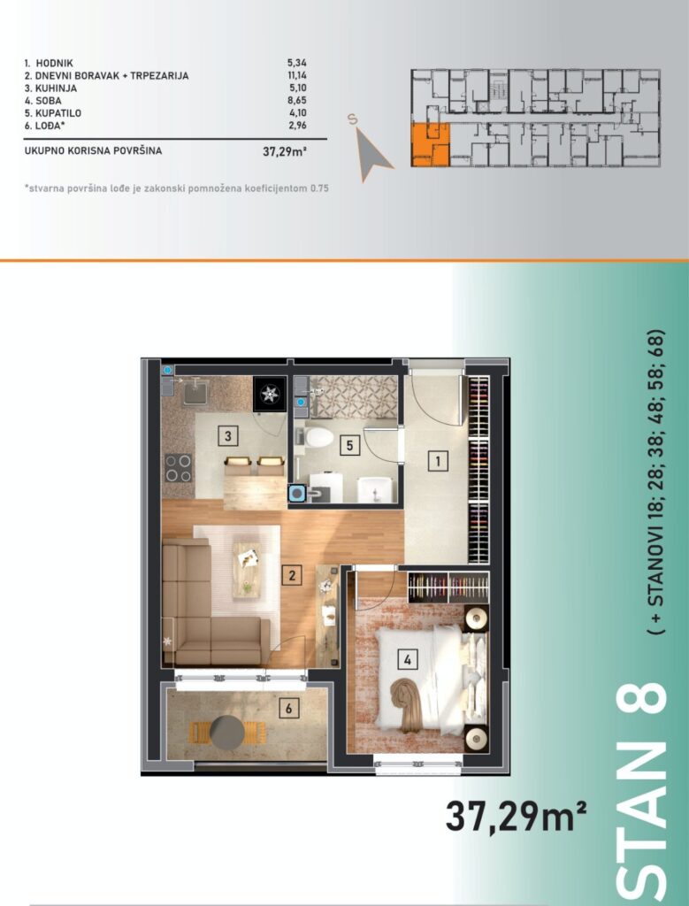 Izdaje se trosoban stan – novogradnja, 77 m², VI sprat…