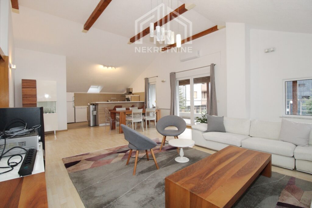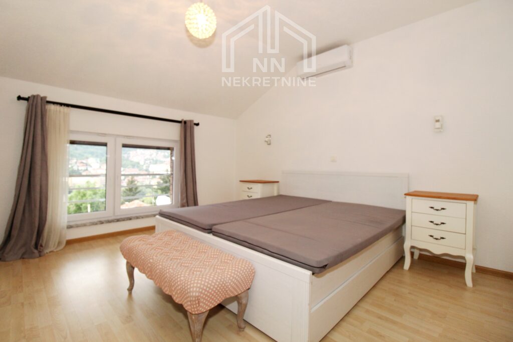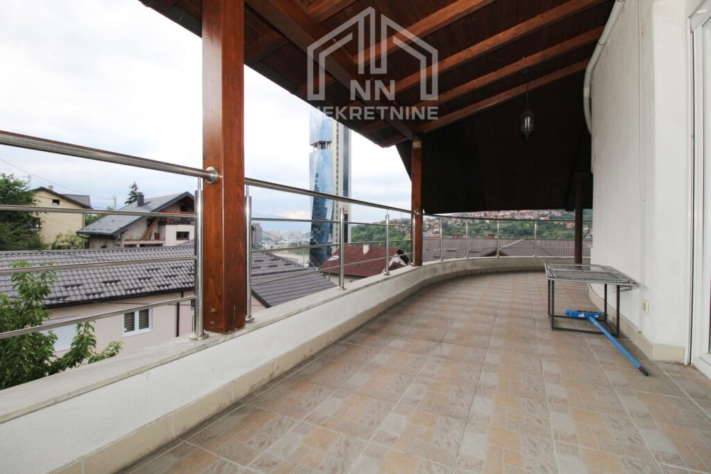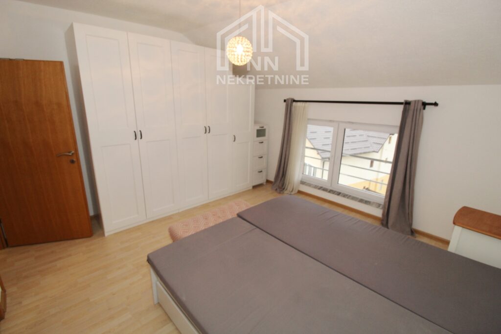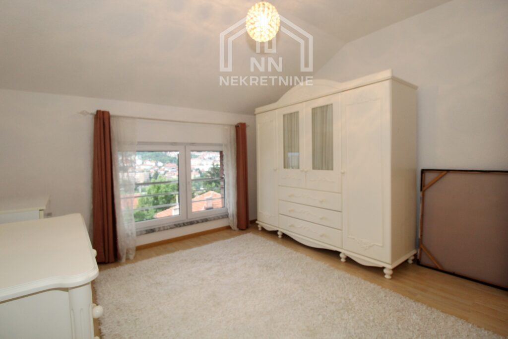 Iz ponude izdvajamo potpuno namještenu četverosobnu kuću ukupne kvadrature 135m2 koja se nalazi na drugom spratu manjeg stambenog objekta. Posjeduje klimu. U stanu je grijanje na plin. Ispred kuće ima obezbjeđeno parking mjesto. Stan je u potpunosti adaptiran prije desetak godina. Od sigurnosti bismo izdvojili alarm i blind vrata. Ono što ovaj stan izdvaja i čini posebnim jeste otvoreni koncept u dnevnom boravku, te visoki stropovi od 3,7 metara. Stan je prozračan i posjeduje dosta prirodne svjetlosti.