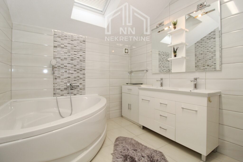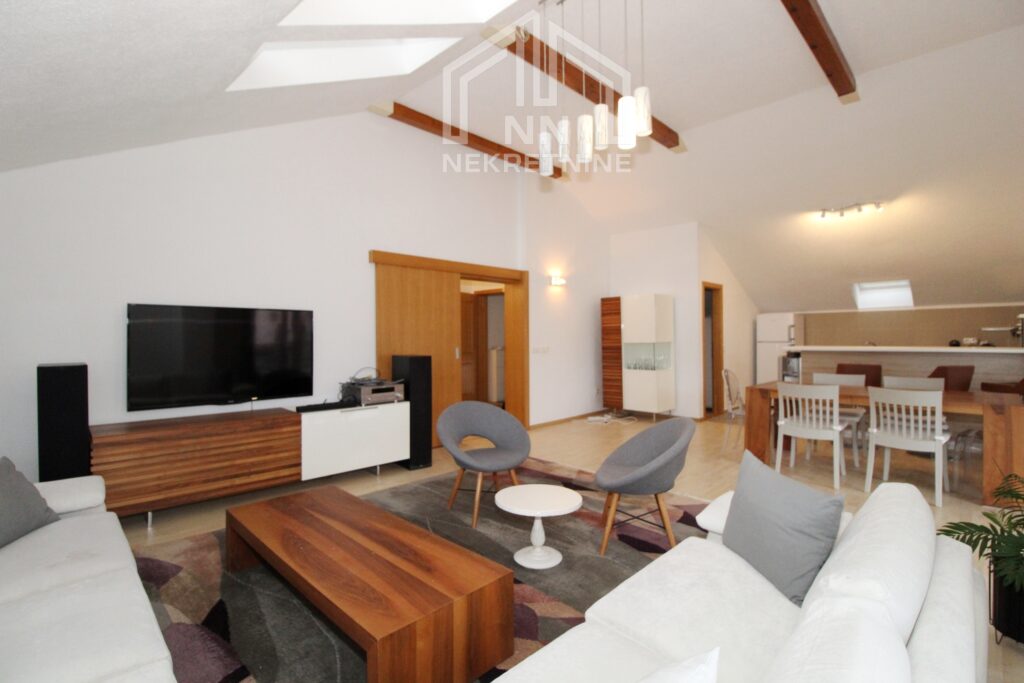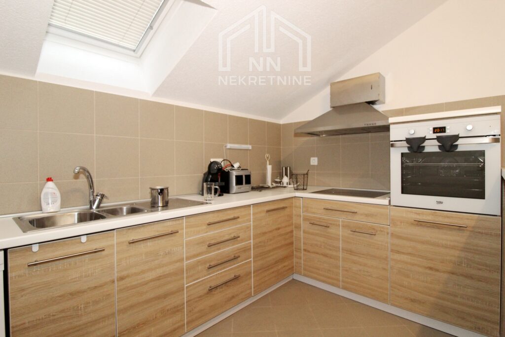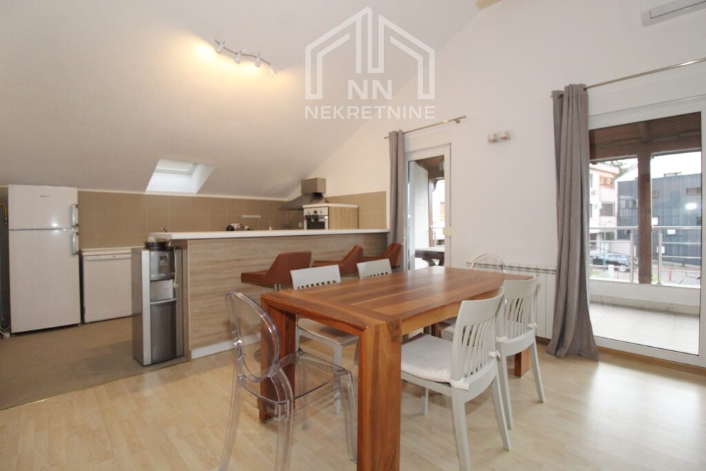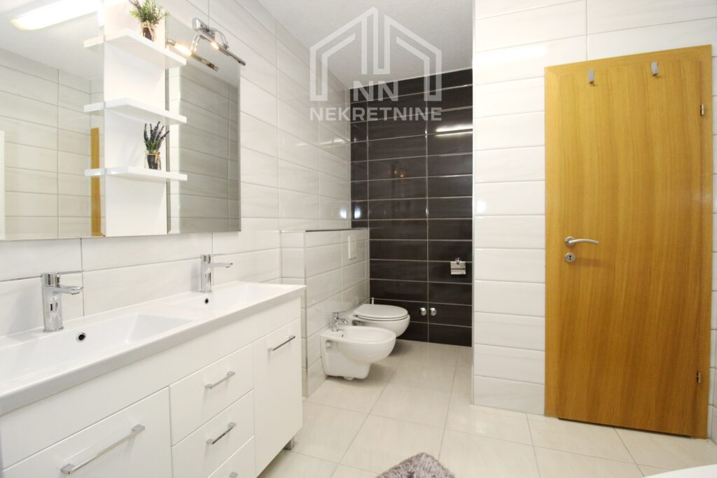 Iz ponude izdvajamo potpuno namještenu četverosobnu kuću ukupne kvadrature 135m2 koja se nalazi na drugom spratu manjeg stambenog objekta. Posjeduje klimu. U stanu je grijanje na plin. Ispred kuće ima obezbjeđeno parking mjesto. Stan je u potpunosti adaptiran prije desetak godina. Od sigurnosti bismo izdvojili alarm i blind vrata. Ono što ovaj stan izdvaja i čini posebnim jeste otvoreni koncept u dnevnom boravku, te visoki stropovi od 3,7 metara. Stan je prozračan i posjeduje dosta prirodne svjetlosti.