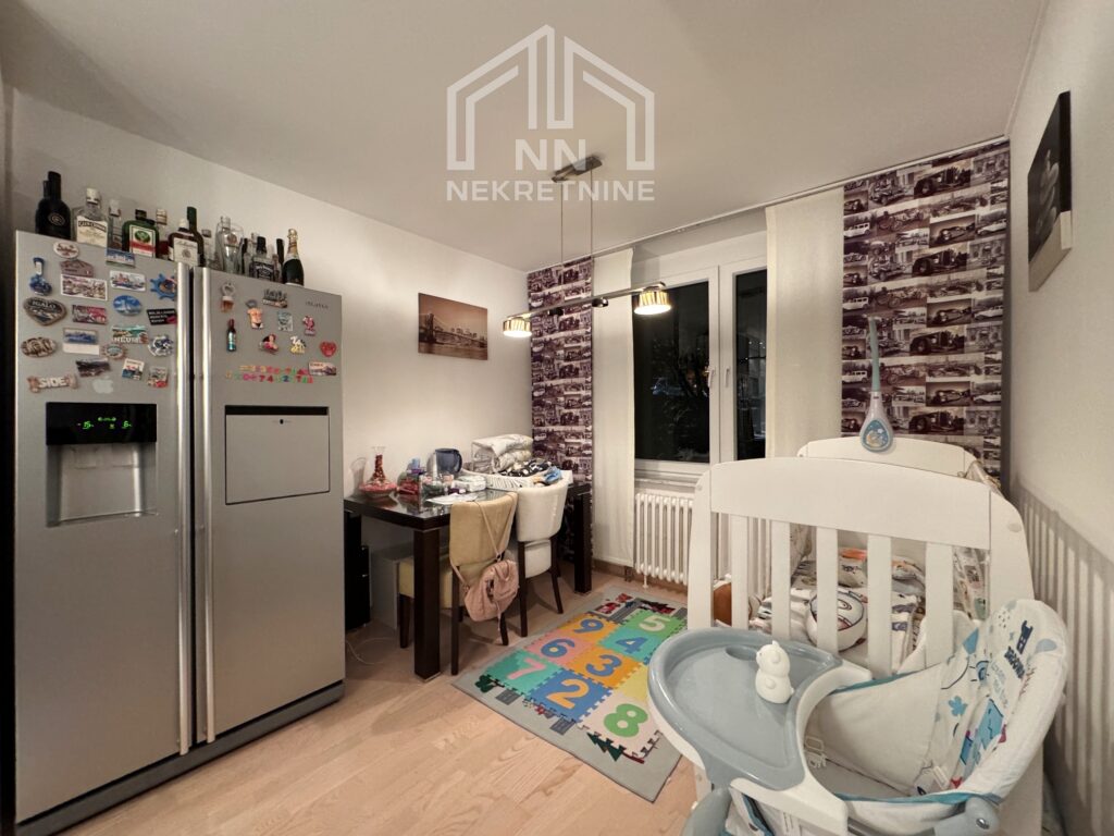 Kuhinja je otvorena prema dnevnom boravku, stvarajući prostranu i funkcionalnu cjelinu. U kuhinji su zamijenjene vodovodne instalacije, postavljene keramičke pločice i kuhinjski šank, koji ostaje u stanu zajedno sa svim elementima i uređajima. U stanu također ostaju ugradbeni plakari u spavaćoj sobi i predsoblju, dok novi vlasnik dobija i prostran podrum kao pomoćni prostor.