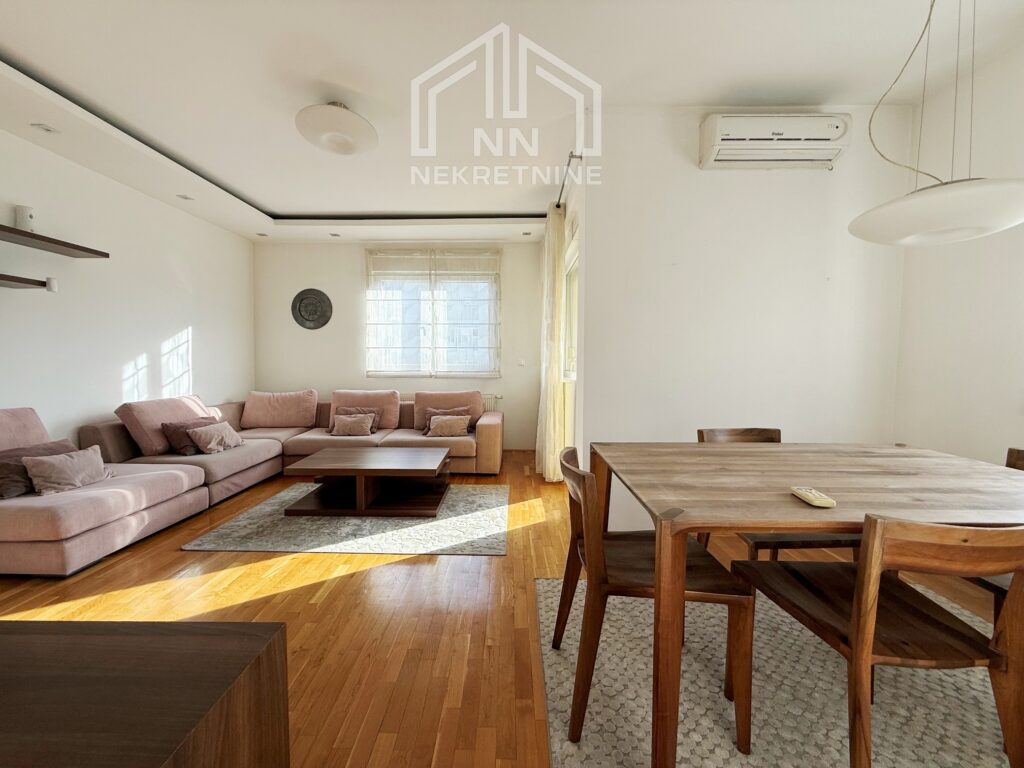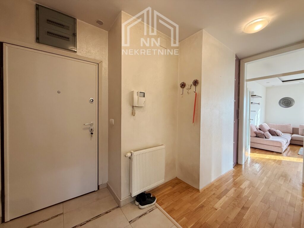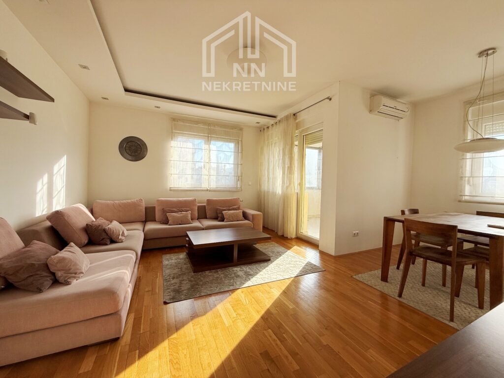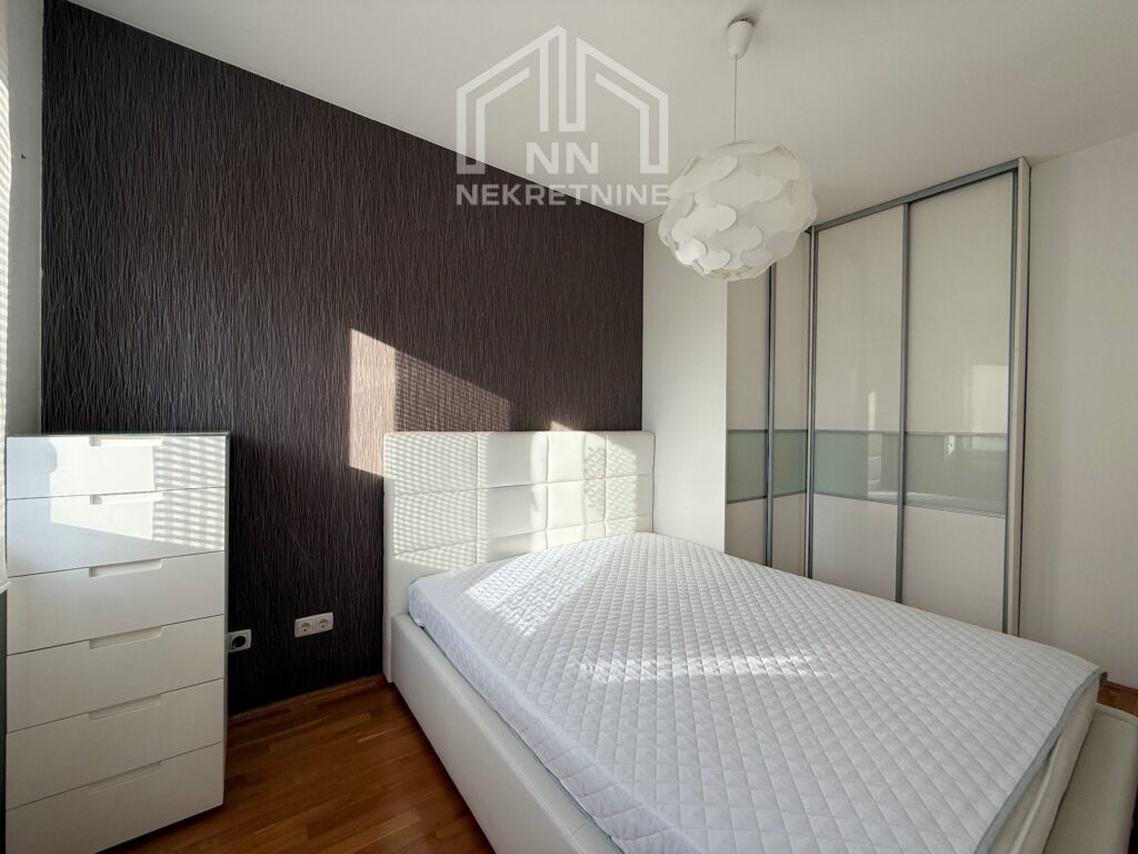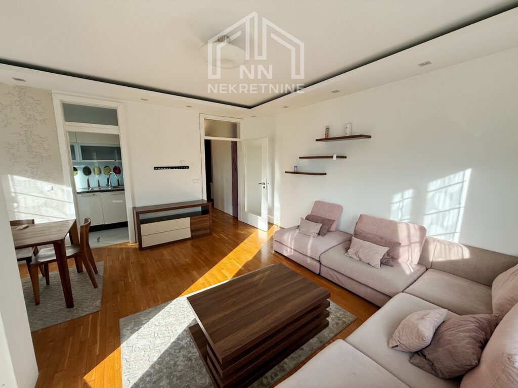 Sastoji se od komotnog dnevnog boravka sa trpezarijom, spavaće sobe, kuhinje, hodnika, kupatila i balkona. Sav namještaj i uređaji su novi i kvalitetni.