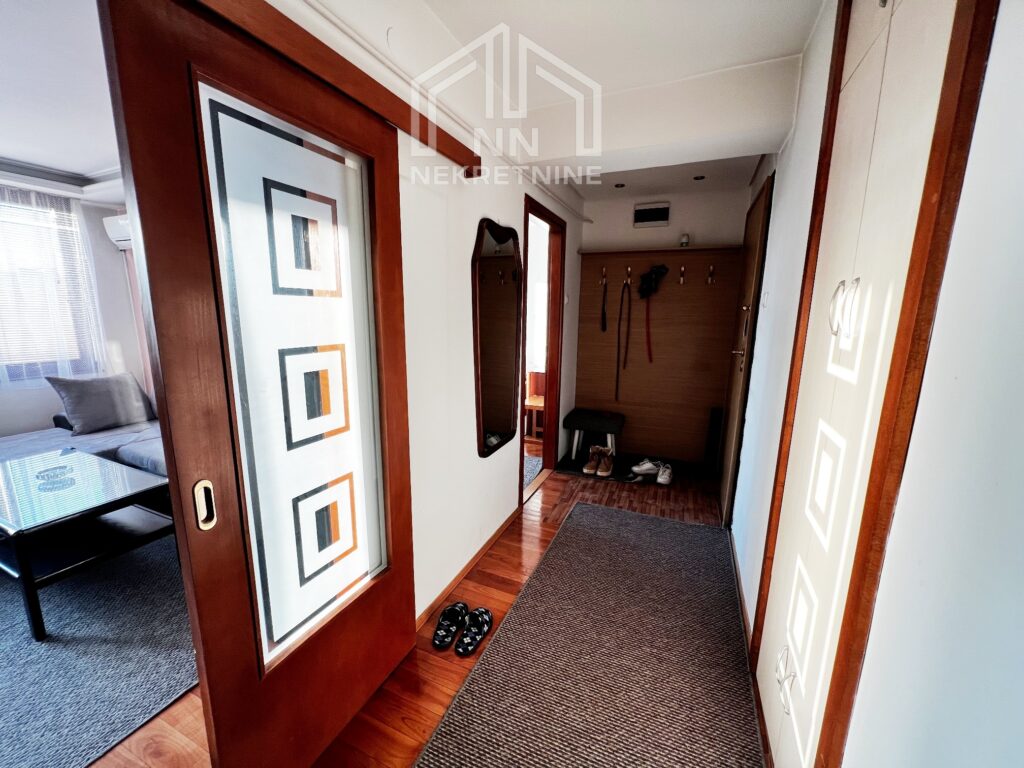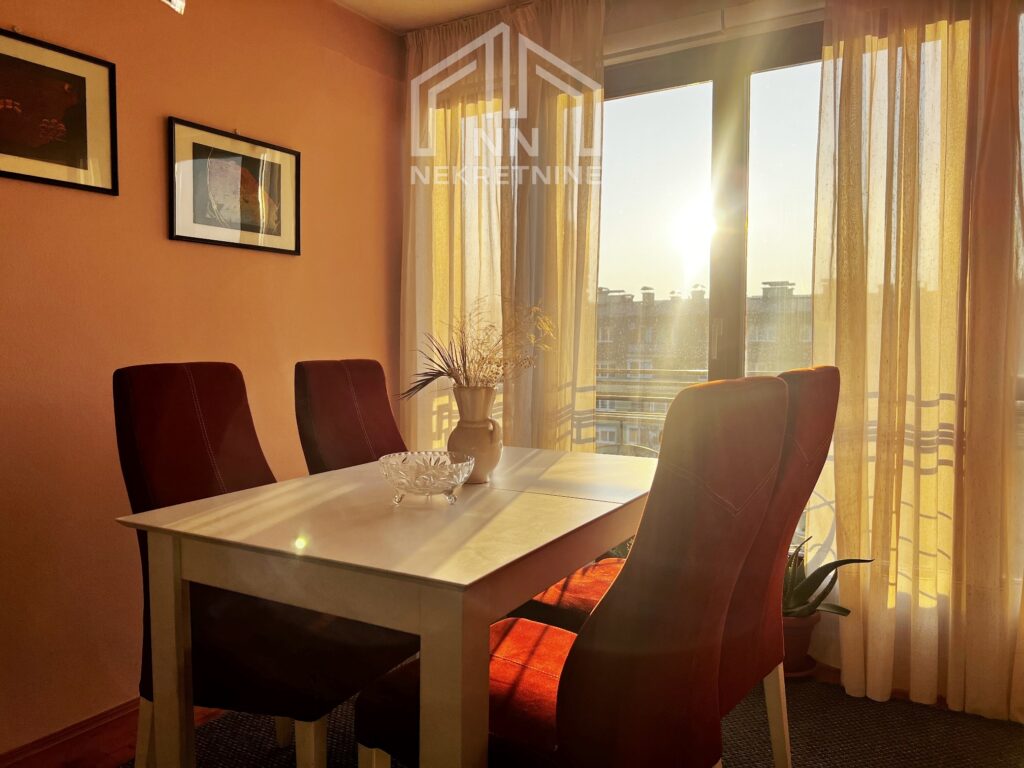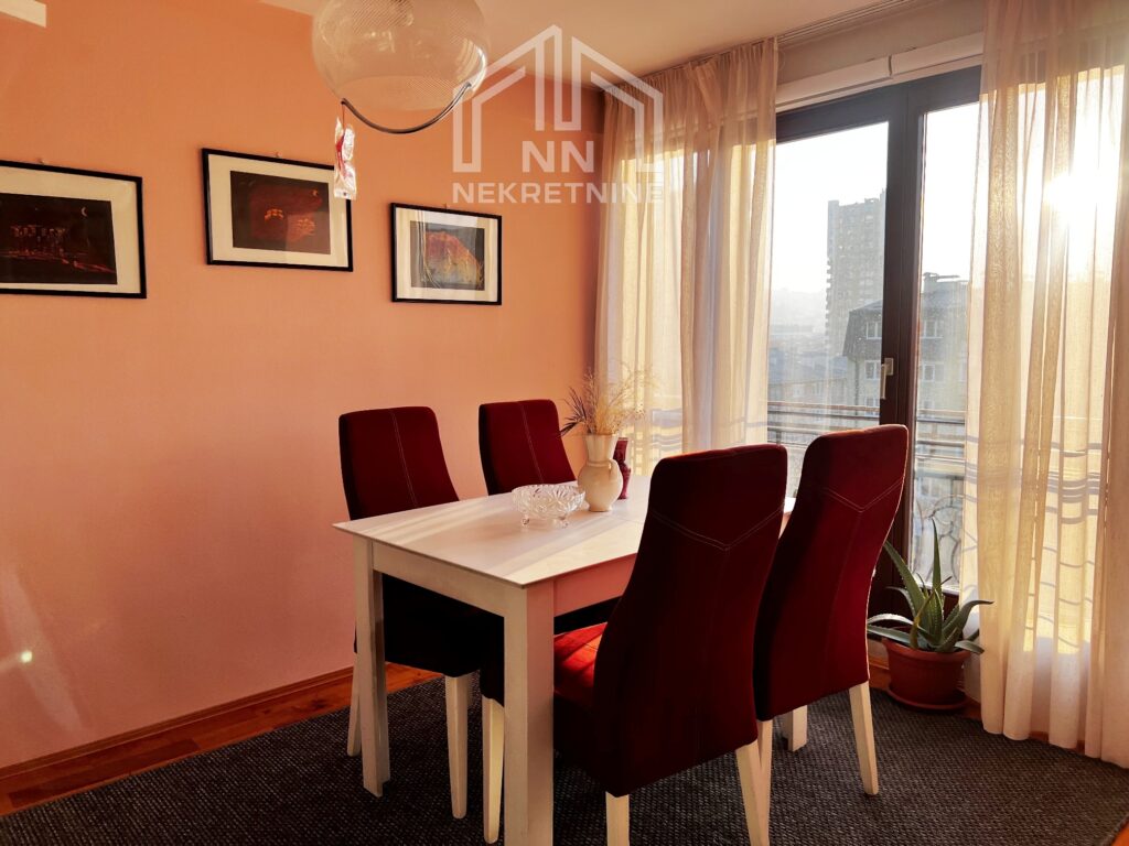 Iznajmljuje se dvosoban stan površine 58m2 smješten na Sedmom spratu stambene zgrade sa liftom. Stan je u odličnom stanju i odmah je useljiv. Opremljen je u potpunosti. Grijanje je centralno gradsko (toplane). Stan posjeduje dosta prirodne svjetlosti.