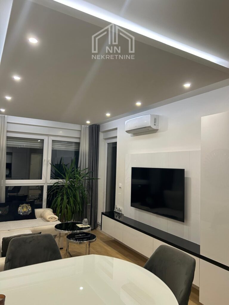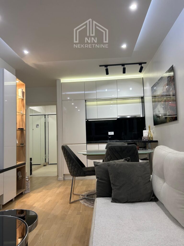 Iznajmljuje se moderno namješten stan kvadrature 38m2, koji je smješten na IV spratu stambene zgrade sa liftom (novija gradnja). U sklopu najma dolazi i garažno mjesto.