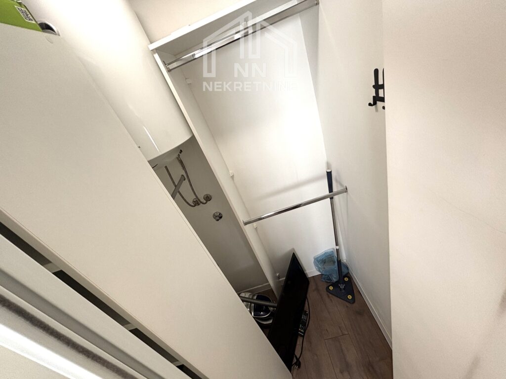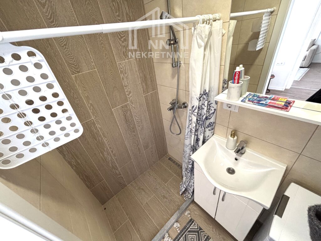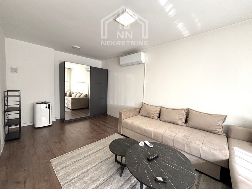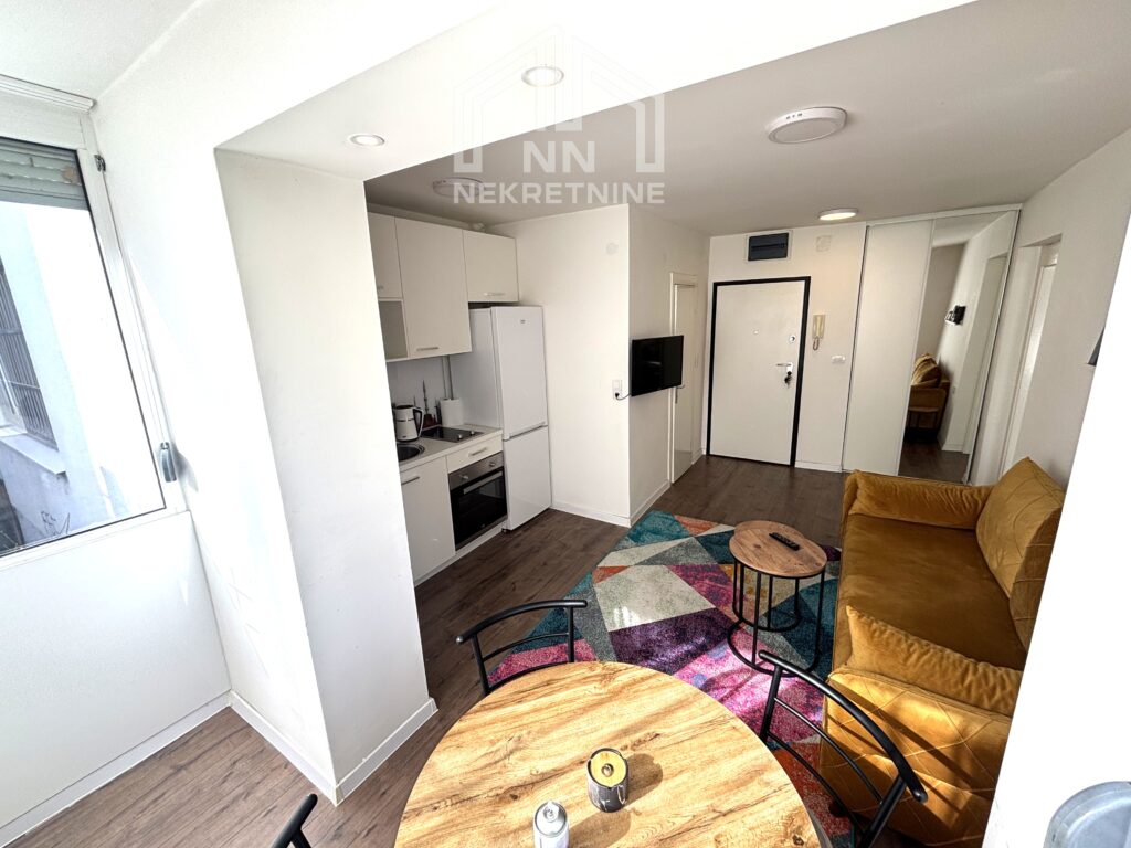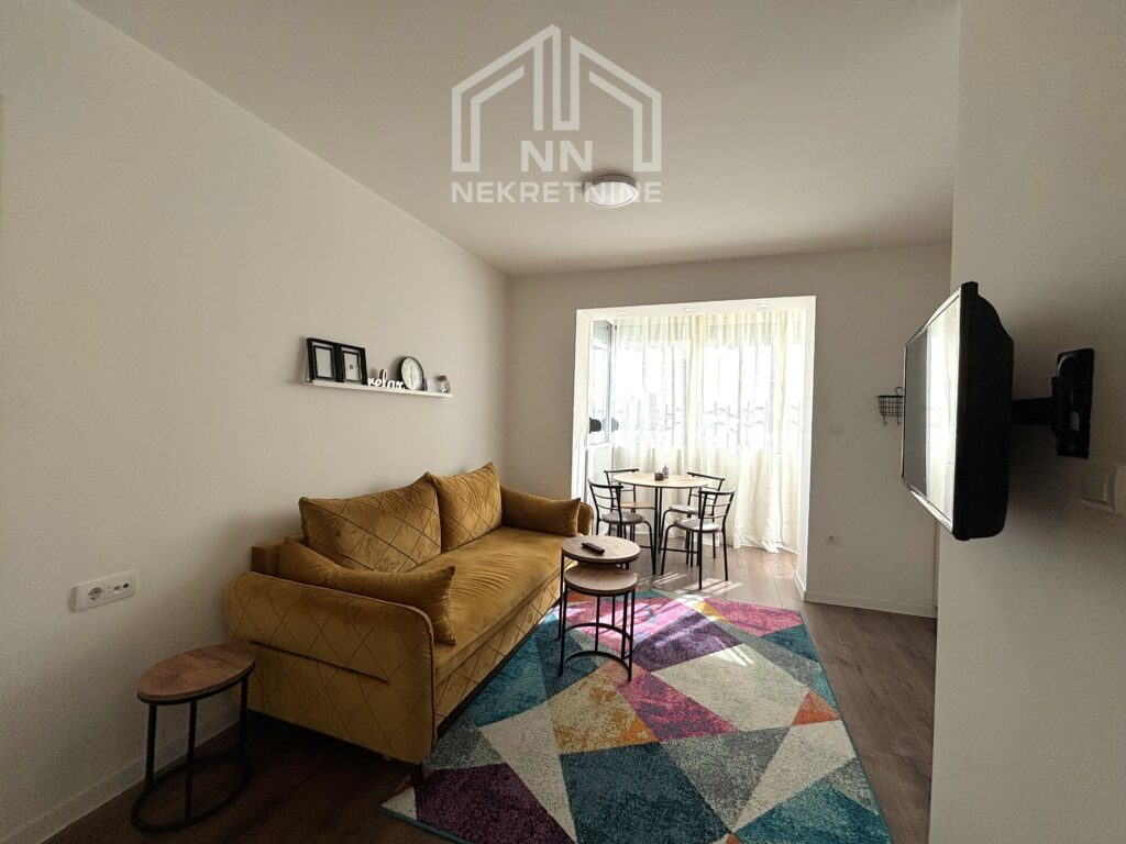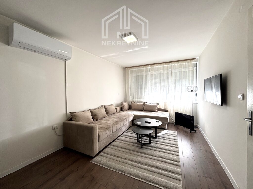 NN Nekretnine iznajmljuje namješten i renoviran jednoiposoban stan površine 40m2 , smješten na visokom prizemlju stambene zgrade bez lifta. Stan je renoviran prije dvije godine . Na podovima je postavljen laminat, vanjska tolarija je ALU i posjeduje vanjske roletne. Grijanje je na struju – Inverter klima i digitalni konvektor.