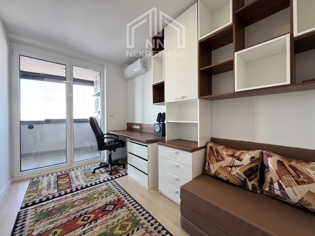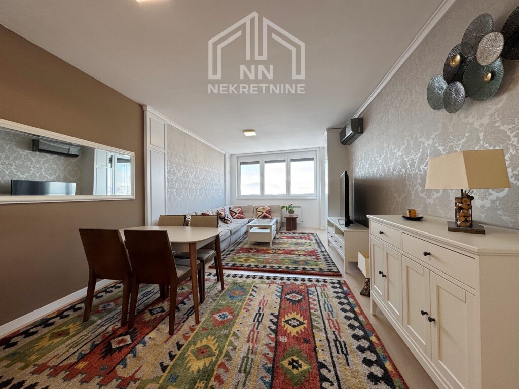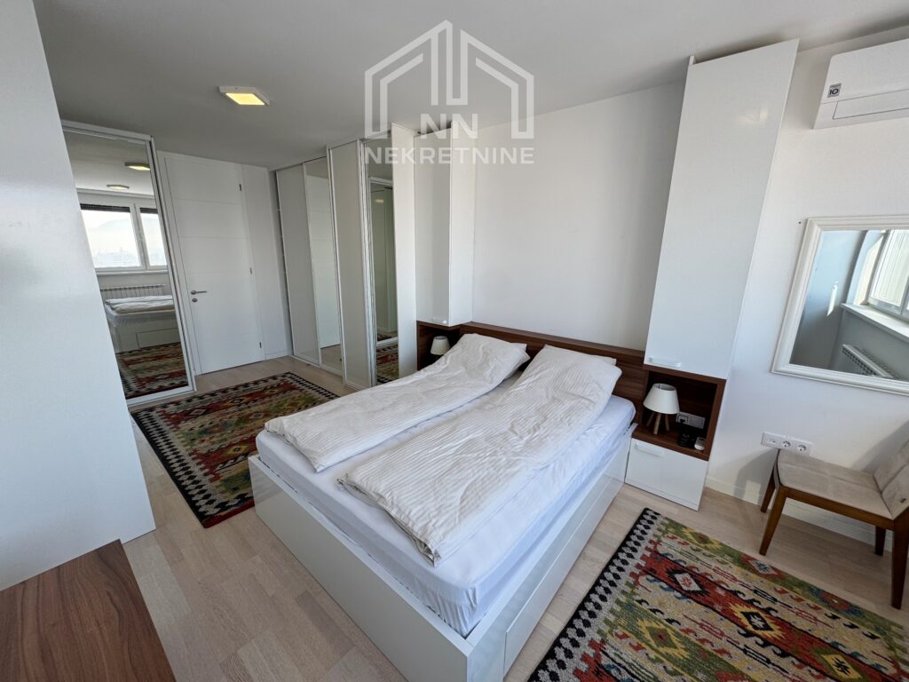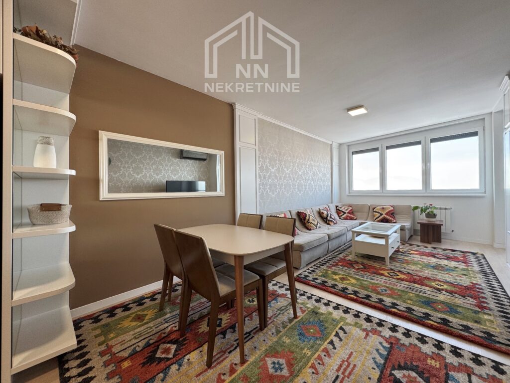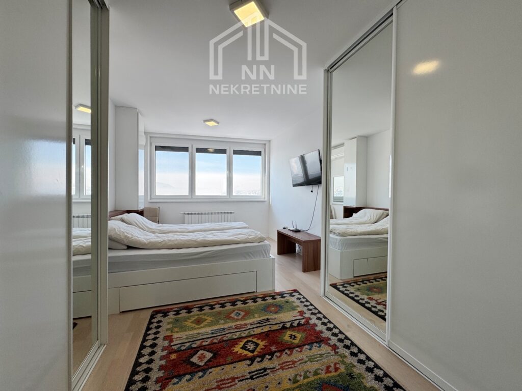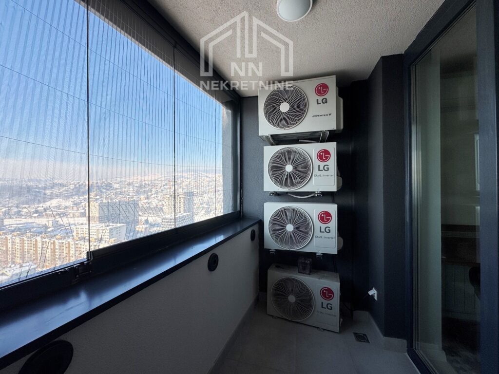 NN Nekretnine iznajmljuje moderan i prostran trosoban stan površine 92 m², smješten na 22. spratu stambene zgrade novije gradnje. Stan je potpuno nov, opremljen kvalitetnim materijalima i namještajem.