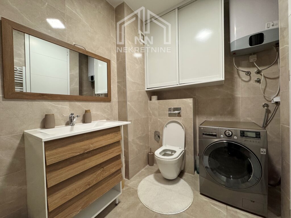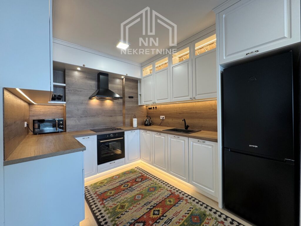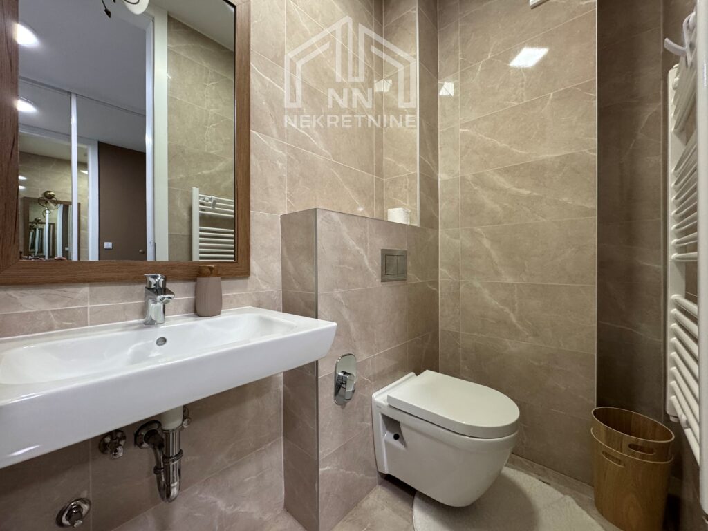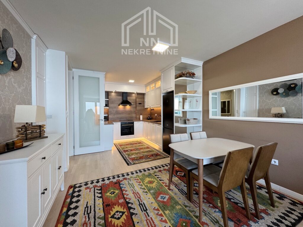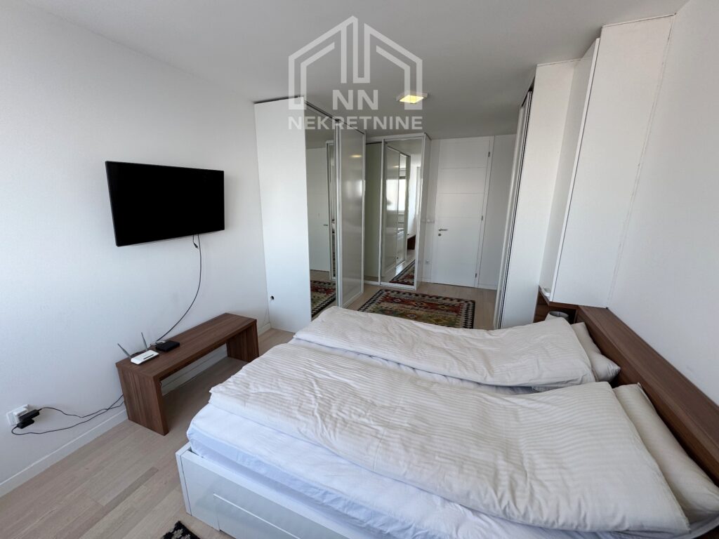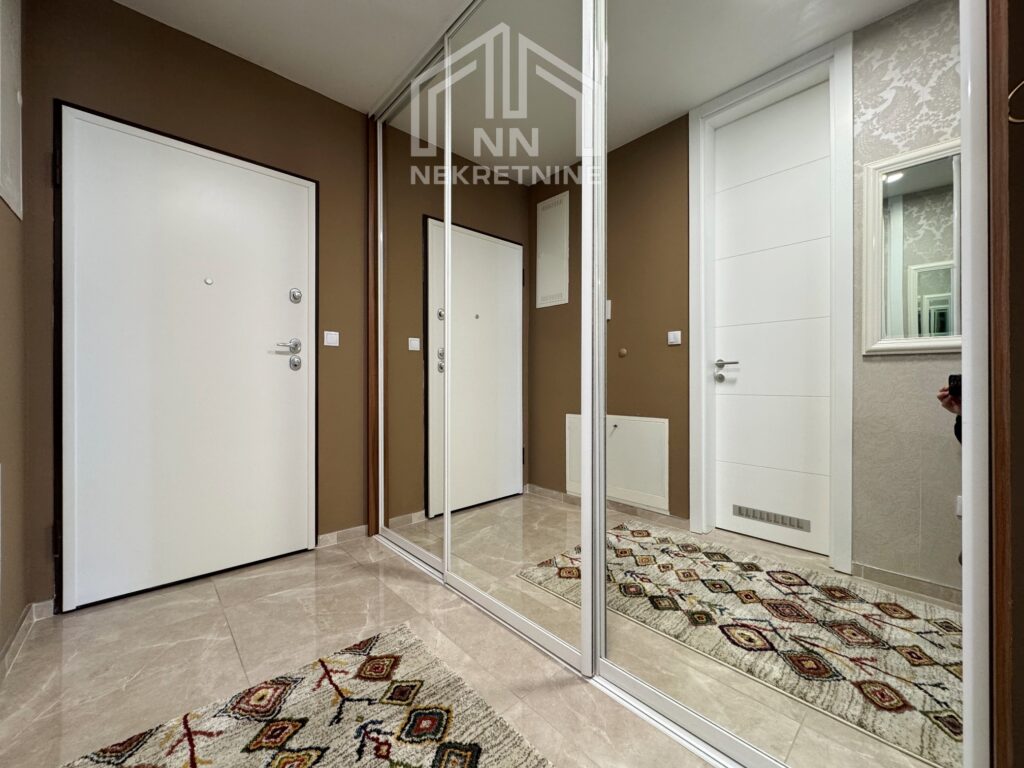 NN Nekretnine iznajmljuje moderan i prostran trosoban stan površine 92 m², smješten na 22. spratu stambene zgrade novije gradnje. Stan je potpuno nov, opremljen kvalitetnim materijalima i namještajem.